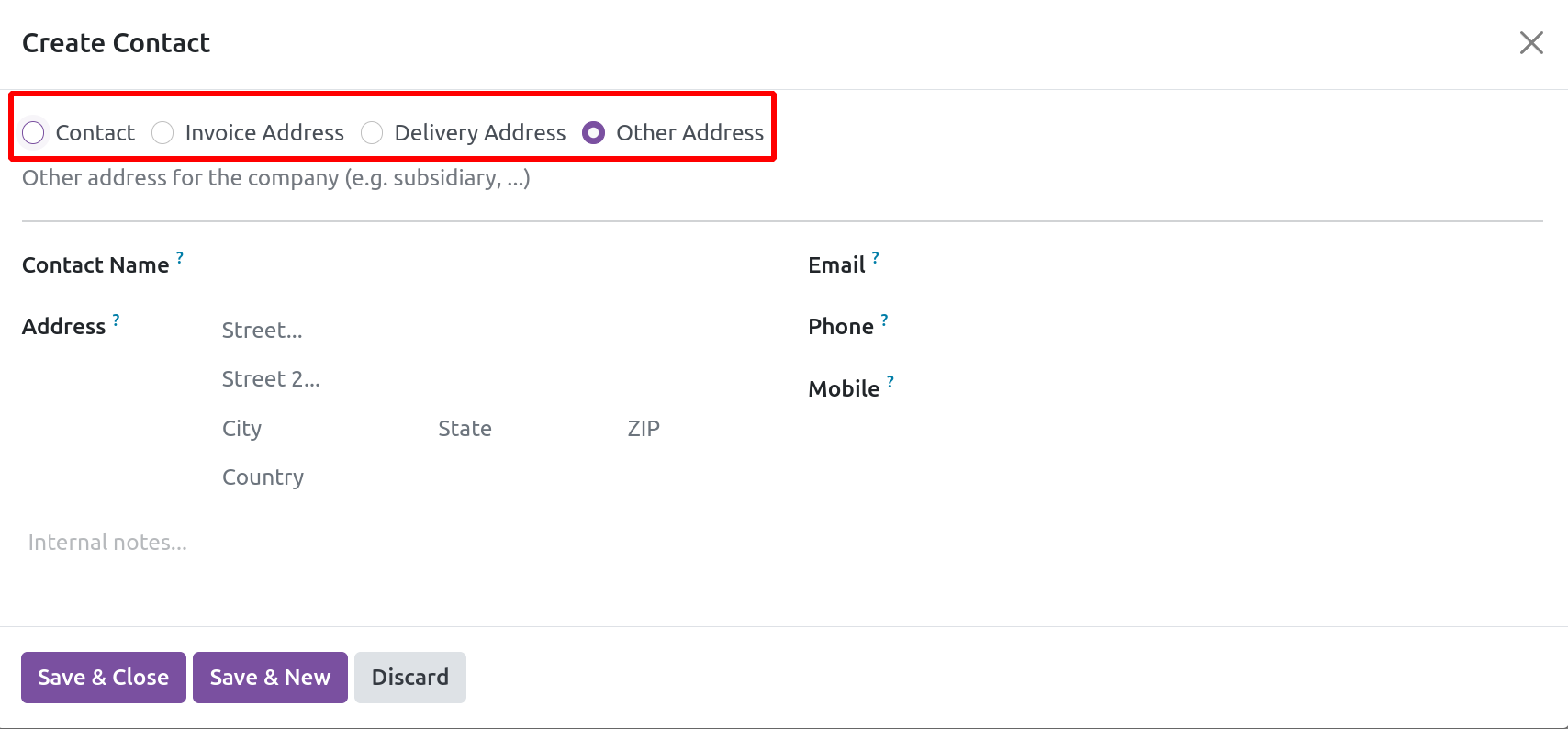 Шаардлагатай бол та энд өөр харилцагч нэмж болно. Борлуулалтын захиалгын хувьд нэхэмжлэх болон хүргэлтийн хаягийг оруулсан болно. Та утасны дугаар, имэйл хаяг, холбоо барих хүний нэр, хаяг, гар утасны дугаараа заасан зайд оруулж болно. Та мөн дотоод тайлбар хэсэгт холбоо барих хаягаа оруулж болно. Эцэст нь Хадгалах ба Хаах цэсний зүйлийг сонгоно уу. Та мөн нэмэлт хаяг нэмэхийн тулд Хадгалах ба Шинэлэх дүрсийг сонгож болно.