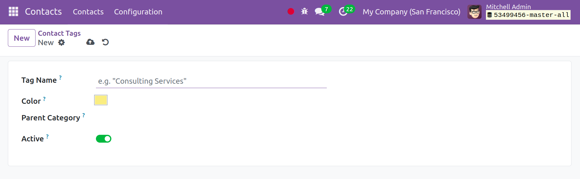 Та энэ үүсгэх хуудсан дээр тохирох эцэг ангилал болон шошгын нэрийг оруулж болно. Нэмж дурдахад та тухайн шошгын өнгийг сонгож болно. Та шошгыг идэвхжүүлэхийн тулд Идэвхтэй гэснийг сонгож идэвхжүүлж болно.