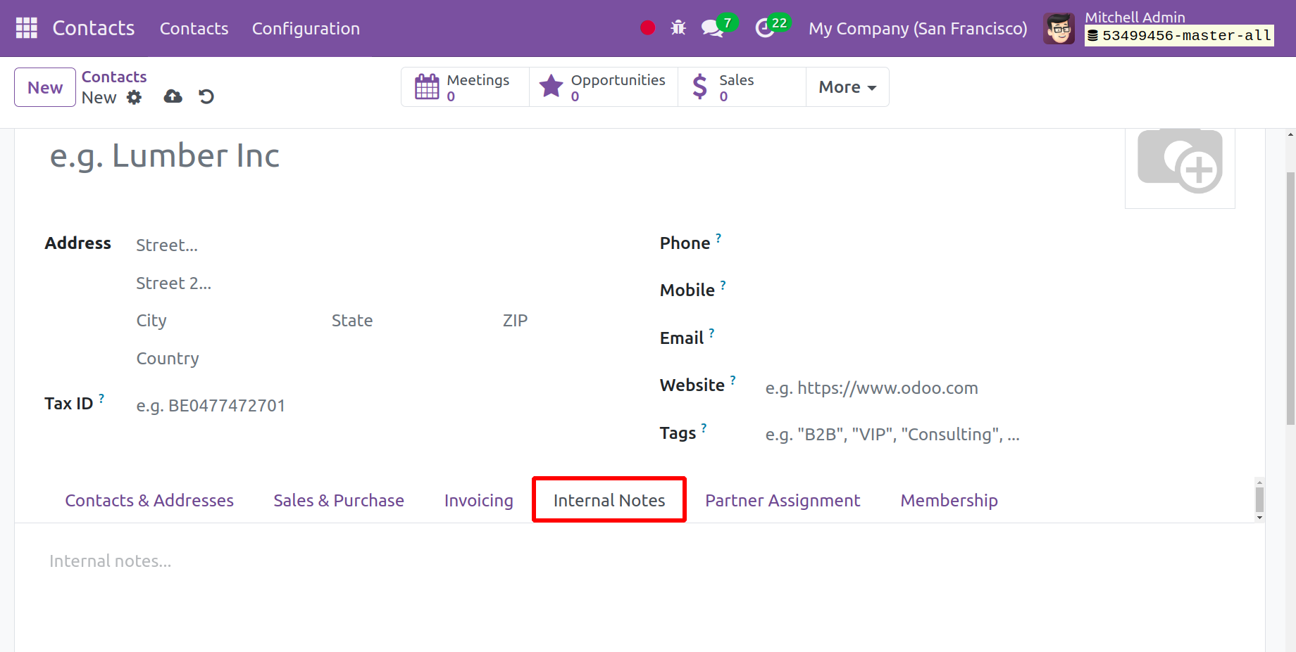 Та холбоо барих хаяг үүсгэх хуудсан дээр харилцагчийн нэр эсвэл компанийн нэрийг оруулах сонголттой. Дараа нь харилцагчийн хаяг, утасны дугаар, имэйл хаяг, вэбсайт, хэл, шошгыг оруулна уу. Татварын дугаарыг заасан талбарт оруулж болно. Нэмэх дүрсийг ашиглан та Харилцагчийн нэр болон Хаяг табын доор нэмэлт мэдээлэл нэмж болно. Үүнийг хийсний дараа та өөр цонх харах болно.