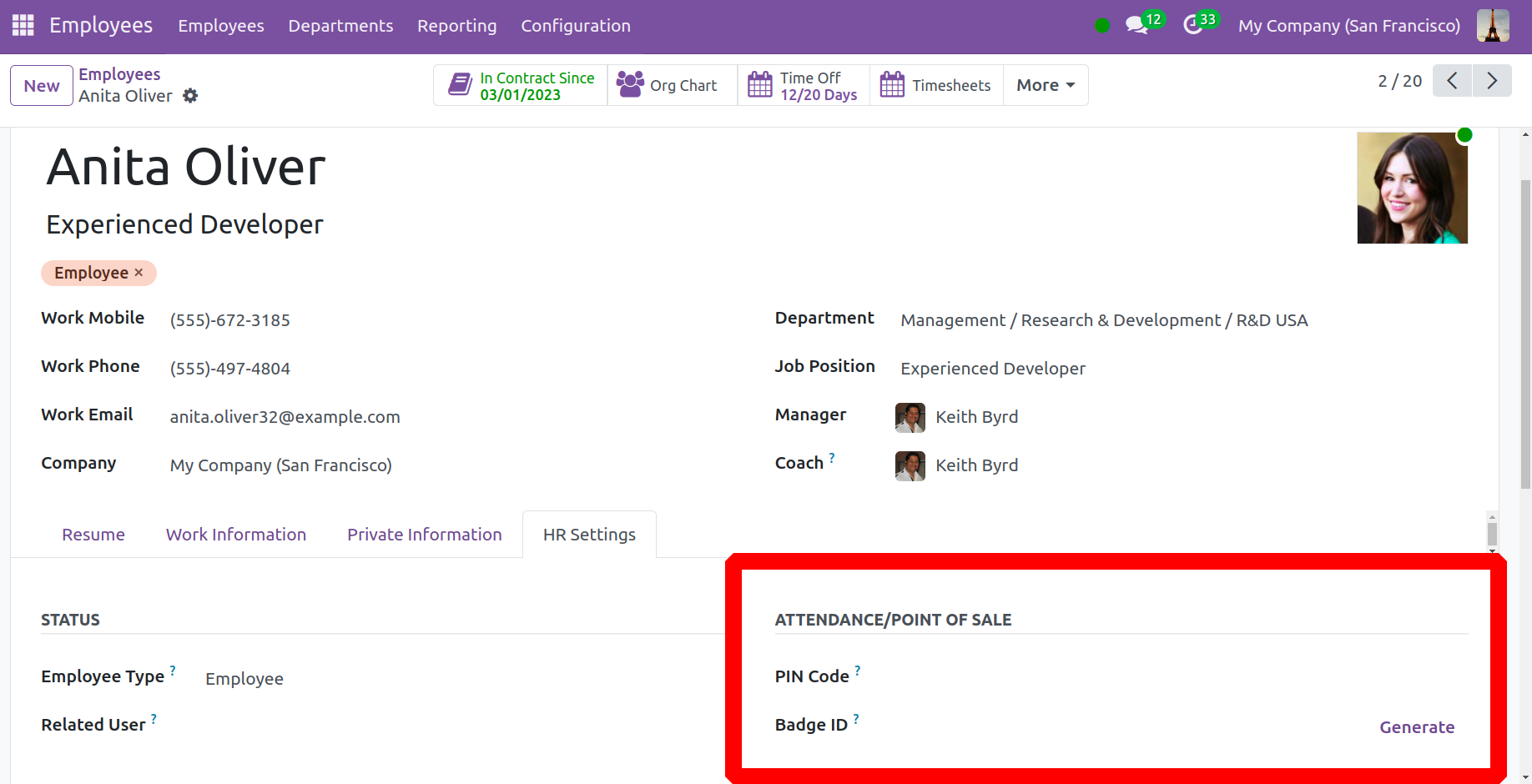 Хүний нөөцийн тохиргооны доор ажилтны модульд шинэ ажилтан нэмэгдэхэд тэд тэмдгийн дугаар үүсгэж, ПИН код нэмэх боломжтой. Та ПИН кодын хэсэгт байрлах киоск табын доор бүртгүүлэх болон гарах кодыг оруулж болно. Тэмдгийн дугаарыг Үүсгэх дүрсийг сонгосны дараа харах боломжтой болно. "Тэмдэг хэвлэх" товчийг сонгосноор та мөн тэмдгийг хэвлэж болно.
