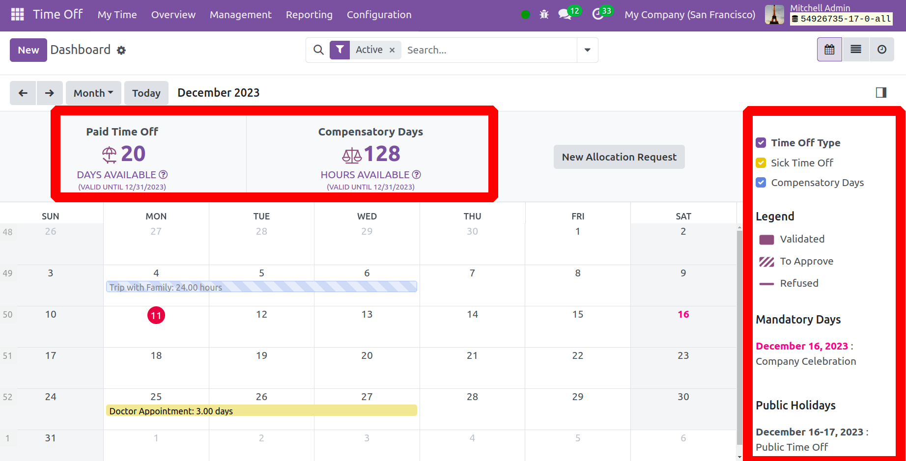 Хүний нөөцийн удирдлагын гол үүрэг хариуцлагын нэг бол чөлөөний удирдлага юм. Чөлөөг зохих ёсоор бүртгэх нь аливаа байгууллагын чухал тал юм. Хэрэв та чөлөөгөө удирдах талаар огт бодохгүй бол энэ нь байгууллагад хор хөнөөл учруулна. Төсөлд оролцсон бүх ажилчдын чөлөөг баримтжуулсан байх ёстой. Хэрэв чөлөө авсан бол бизнесийн жигд, үр ашигтай ажиллагааг хангахын тулд тогтмол авч, зөв харьцах хэрэгтэй. Үүнийг ажиллуулахын тулд та Odoo ERP дахь Цагийн чөлөөний модулийг идэвхжүүлэх шаардлагатай. Энэхүү тодорхой модулийг Хүний нөөцийн хэлтсийн чөлөөг хянах зорилгоор ашиглах болно. Та чөлөөний хүсэлтээ ижил платформ доторх холбогдох хяналтын албан тушаалтнуудаас батлуулах болно. Цалин хөлс, цалинтай чөлөө, цалинтай чөлөө болон бусад олон чөлөөтэй холбоотой сонголтуудыг модуль хангаж өгдөг. Одоо ажилчдын чөлөөг жигд авахын тулд модулийг хэрхэн удирдаж, хянах талаар авч үзье.