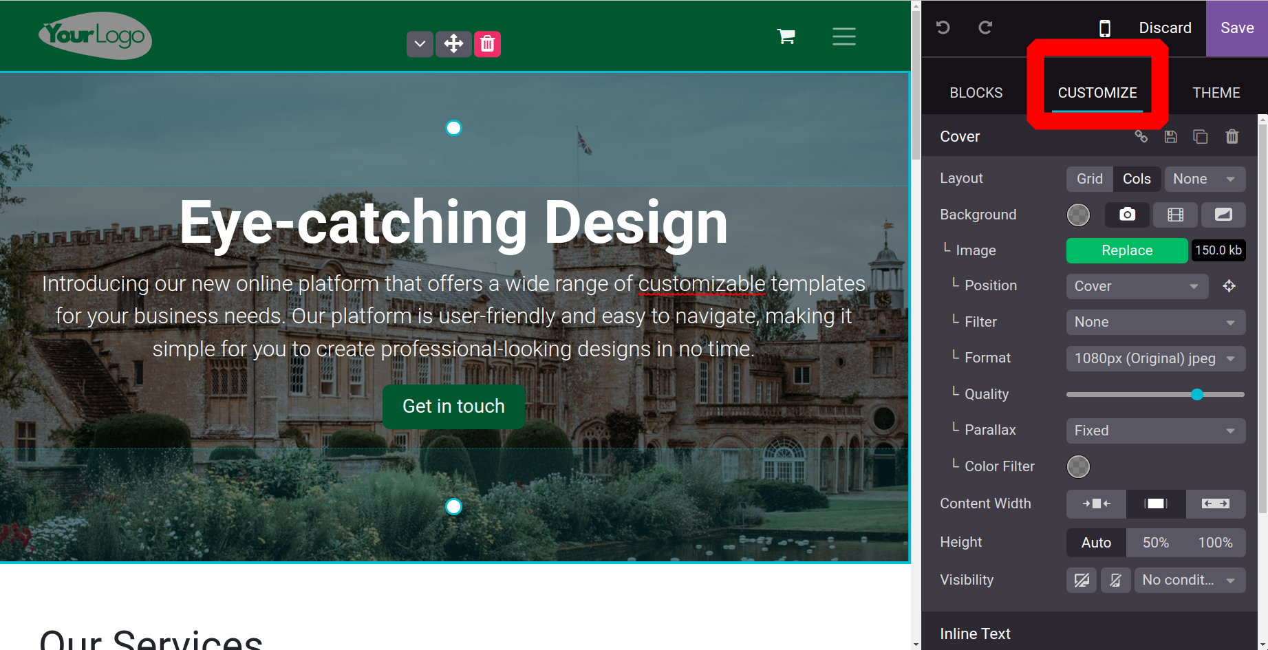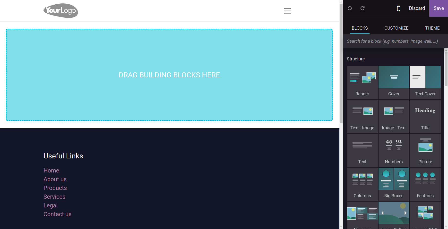 Энэ нь цонхны баруун хэсэгт байрлах барилгын блокуудыг чирж болон буулгаж хялбар болгоно. Блокууд хэсэгт таны сонгох боломжтой тохиромжтой блокууд бий. Хуудасныхаа сонгосон блокийг өөрчлөхийн тулд ТОХИРУУЛАХ цэсний зүйлийг дарна уу.