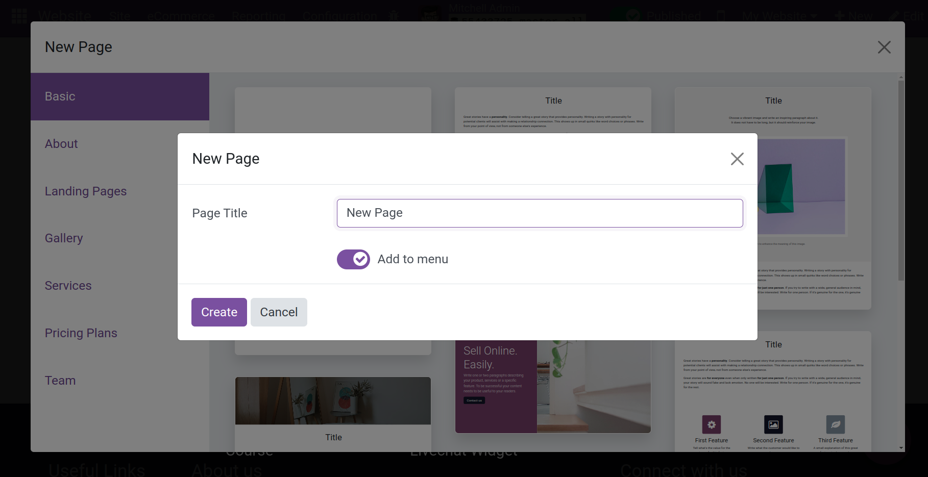 Дараа нь тэдэнд хуудасны гарчгийг оруулж, баталгаажуулах боломжийг олгодог хайрцаг гарч ирнэ. Хэрэглэгч оруулгыг баталгаажуулсны дараа шинэ хуудас үүсч, шаардлагатай бол хуудсыг өөрчлөх янз бүрийн вэбсайт бүтээгчдийг санал болгодог.
