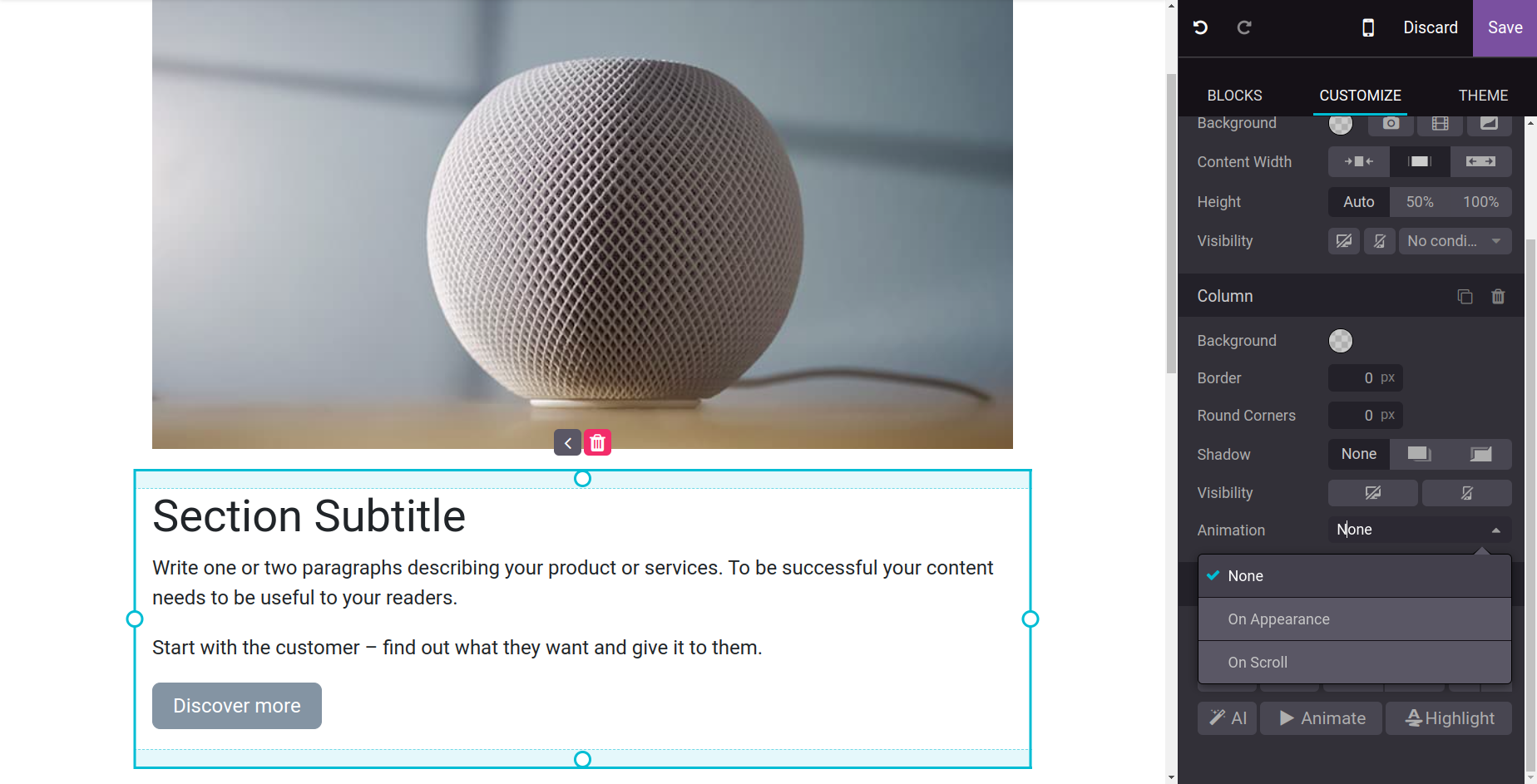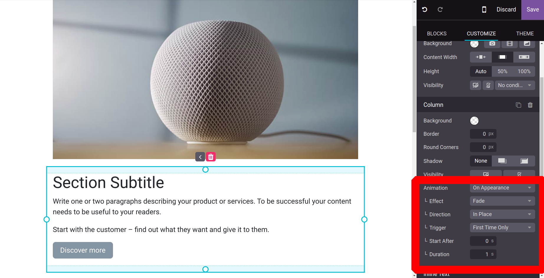 Дэлгэц дээр шинэ хэсэг нэмж оруулахын тулд зүгээр л чирж тавиад л болно. Хэрэв хэсэг хэсгүүдийн аль нэгийг сонгосон бол хуудсыг хэрхэн ашиглаж байгаагаас хамааран өөрчилж болно. Тиймээс өөрчлөх функц нь дэлгэцийн хэрэглээ болон гоо зүйн сэтгэл татам байдлыг сайжруулдаг.