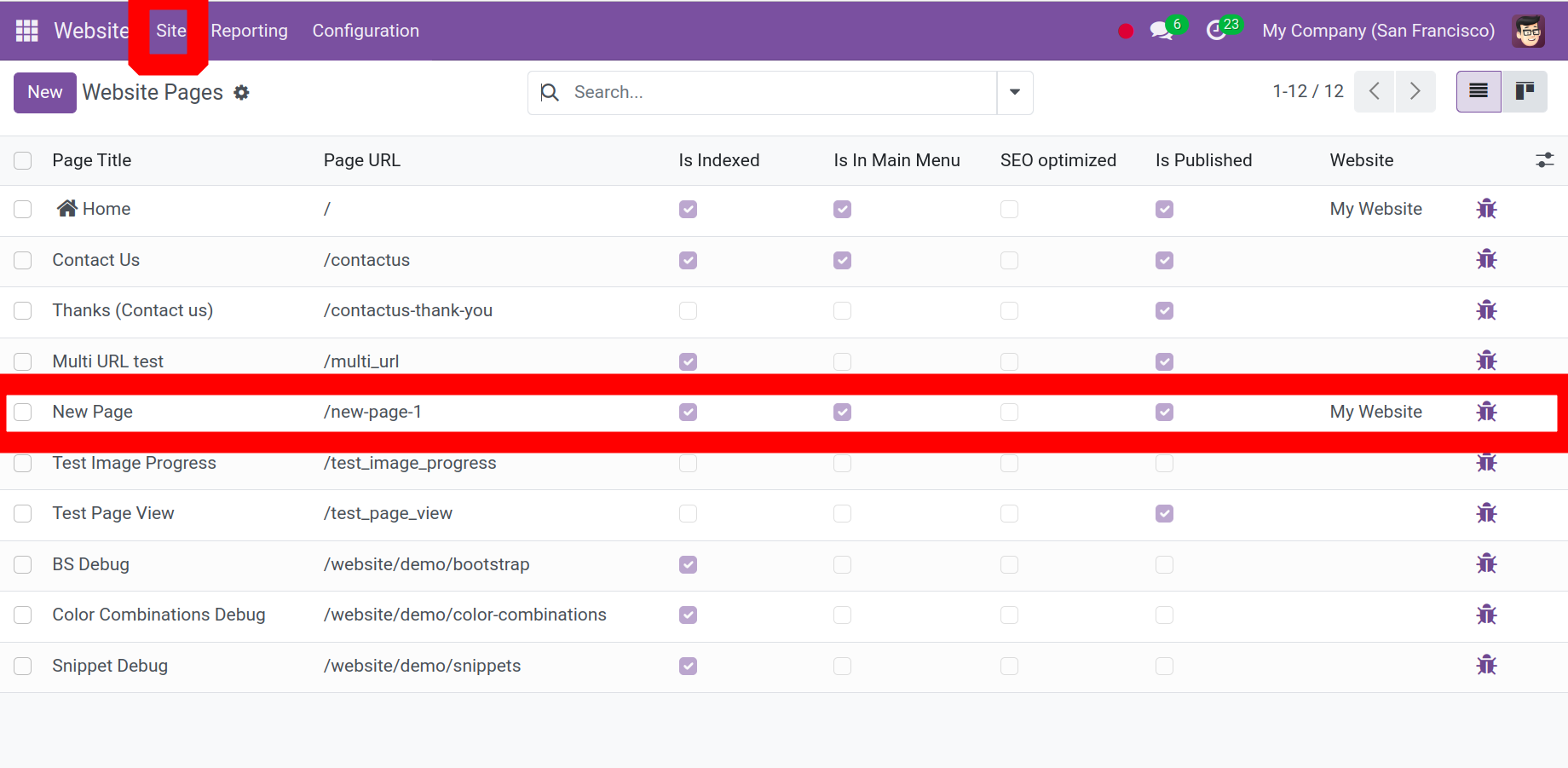 Дараа нь Сайтын цэсний доор байгаа хуудсыг шалгана уу. Жагсаалтаас хэрэглэгчид үүсгэсэн хуудсыг үзэх боломжтой.