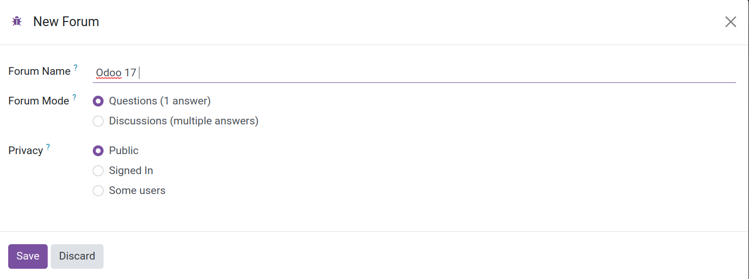 Odoo-ийн форумын функц нь хэрэглэгчид асуулт асууж, хариулт авах боломжтой харилцан ярианы платформ болж ажиллах болно. Хэрэв та вэбсайт дээрээ хэлэлцүүлгийн сэдэв эсвэл асуултын форум үүсгэвэл тантай санал бодлоо хуваалцдаг хүмүүс цугларч, харилцан яриа өрнүүлэх боломжтой.