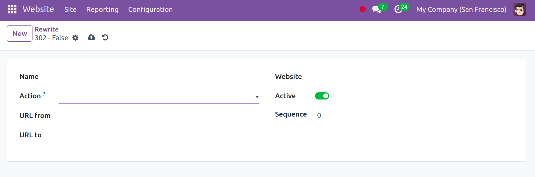 Тохиргоо цэсний доор байрлах Дахин чиглүүлэх сонголтыг вэбсайтын хуудсан дээрх контентыг дахин чиглүүлэх эсвэл дахин бичихэд ашиглаж болно. Урьдчилан тохируулсан дахин чиглүүлэх дүрмүүдэд үйлдэл, нэр, эхлэх болон очих URL, вэбсайт зэрэг мэдээлэл багтана. Шинээр нэмэхийн тулд Шинэ товчийг дарна уу.