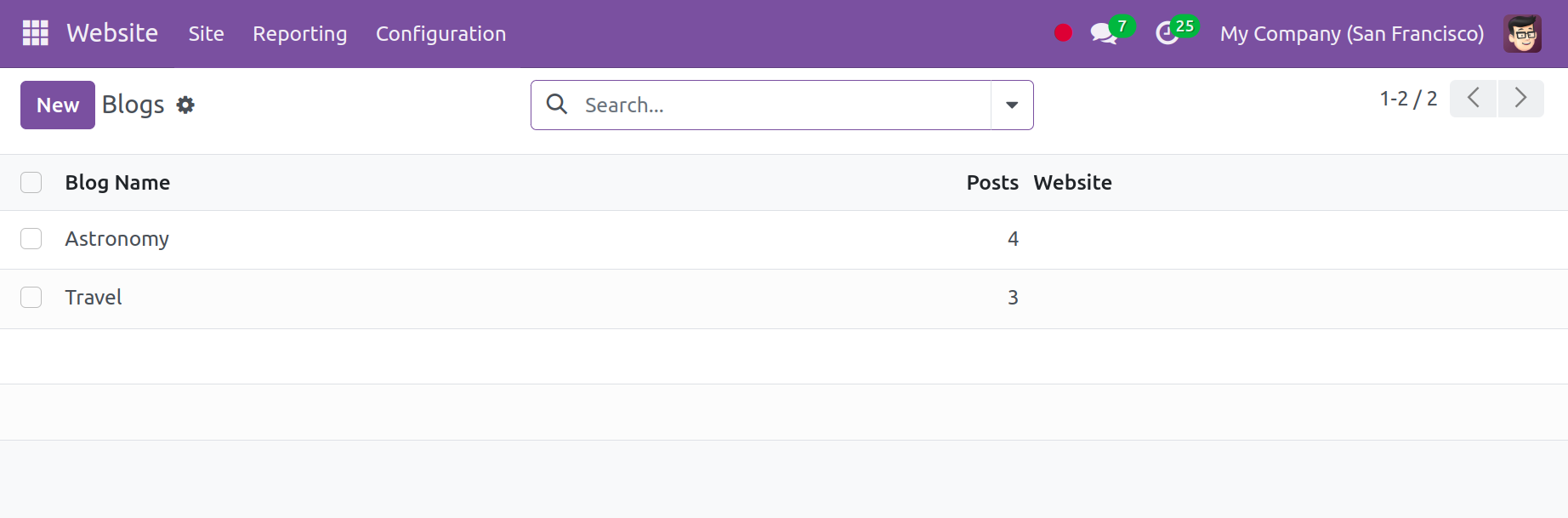 Блог үзэх болон нэмэхийн тулд Блог сонголтыг сонгоно уу. Тэндээс та вэбсайт, блогын нэр, оруулгуудын тоог харах боломжтой. Шинэ блог нэмэхийн тулд Шинэ товчийг дарна уу.