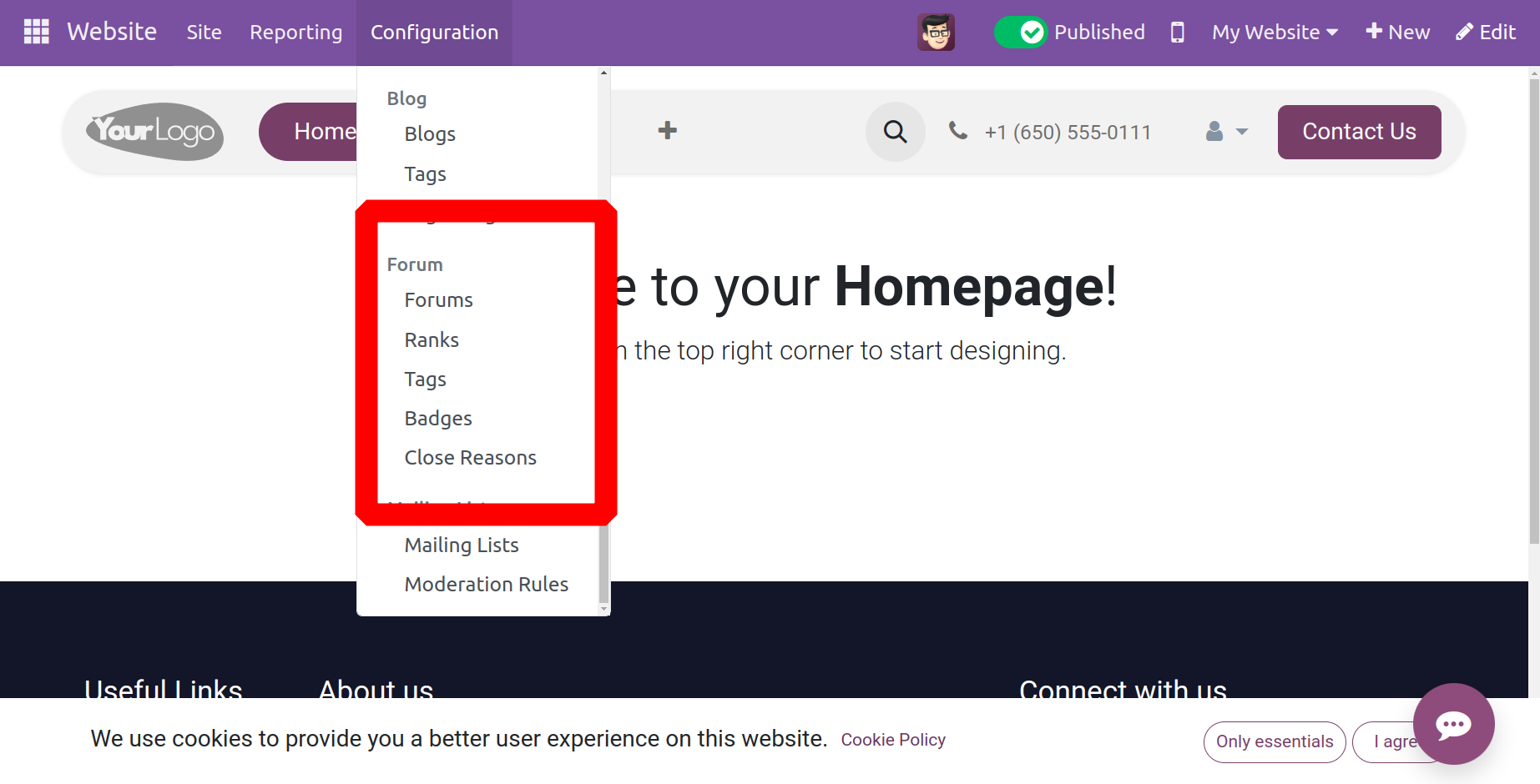 Энэ боломжийг Odoo 17 дээрх хэрэглэгчдэд вэбсайтын модулийн сайтын цэсээр дамжуулан ашиглах боломжтой.