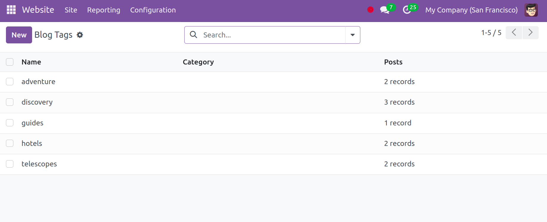 Вэбсайт модулийн Сайтын цэс нь хэрэглэгч шаардлагатай бол блог үүсгэх хэрэгсэлд хандах боломжийг олгодог. Энэ функц нь хэрэглэгчийн вэбсайт дээр янз бүрийн блог бичлэг бичиж, нийтлэх чадварыг хөнгөвчилдөг.